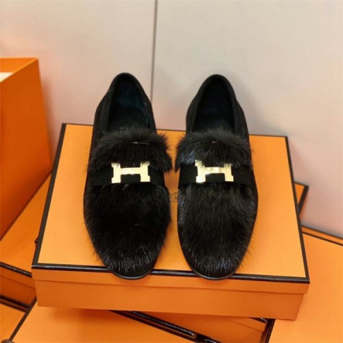 [에르메스] H로고 파리 밍크퍼 로퍼